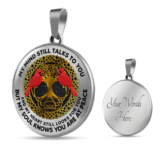 AG0408073 My Mind Still Talks To You Red Cardinals Gold Celtic Knot Tree Of Life Luxury Necklace with Back Engraving