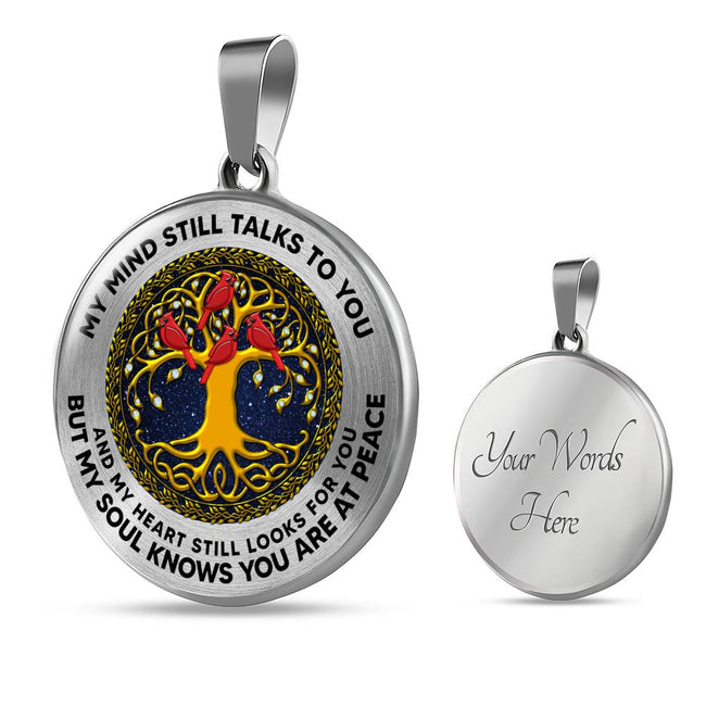 AG0608084 My Mind Still Talks To You Red Cardinals Gold Celtic Knot Tree Of Life Luxury Necklace with Back Engraving