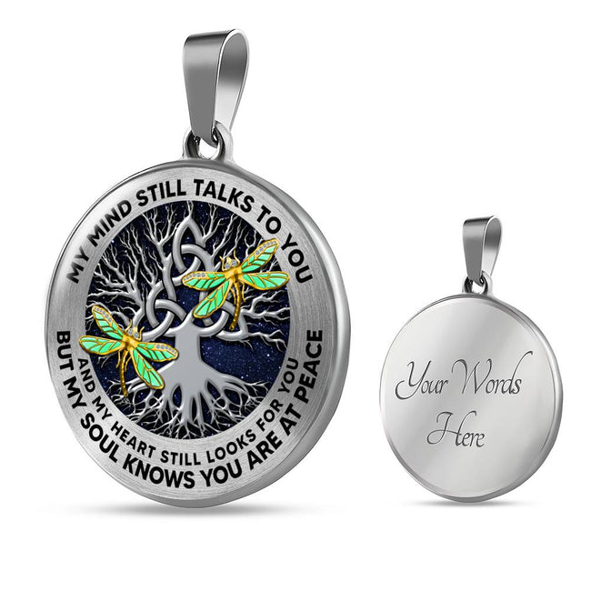 AG0608097 My Mind Still Talks To You Golden Dragonflies Silver Celtic Knot Tree Of Life And Galaxy Luxury Necklace with Back Engraving