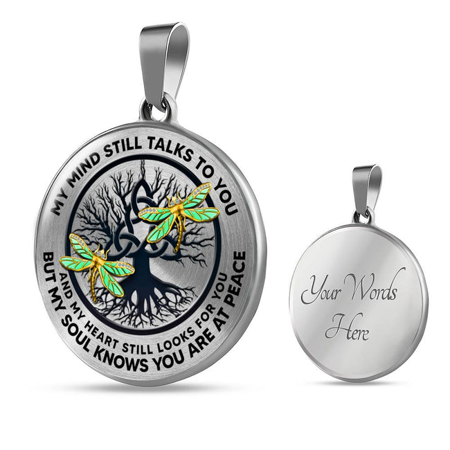 AG0608098 My Mind Still Talks To You Golden Dragonflies Black Celtic Knot Tree Of Life And Galaxy Luxury Necklace with Back Engraving