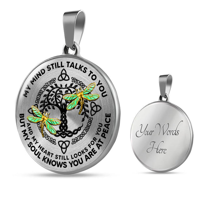 AG0608102 My Mind Still Talks To You Golden Dragonflies Black Celtic Knot Tree Of Life Luxury Necklace with Back Engraving