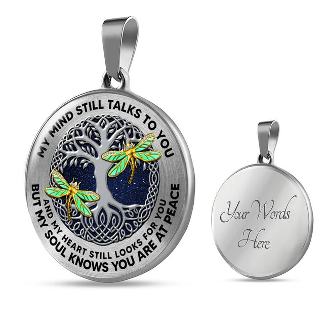 AG0608107 My Mind Still Talks To You Golden Dragonflies Silver Celtic Knot Tree Of Life Luxury Necklace with Back Engraving