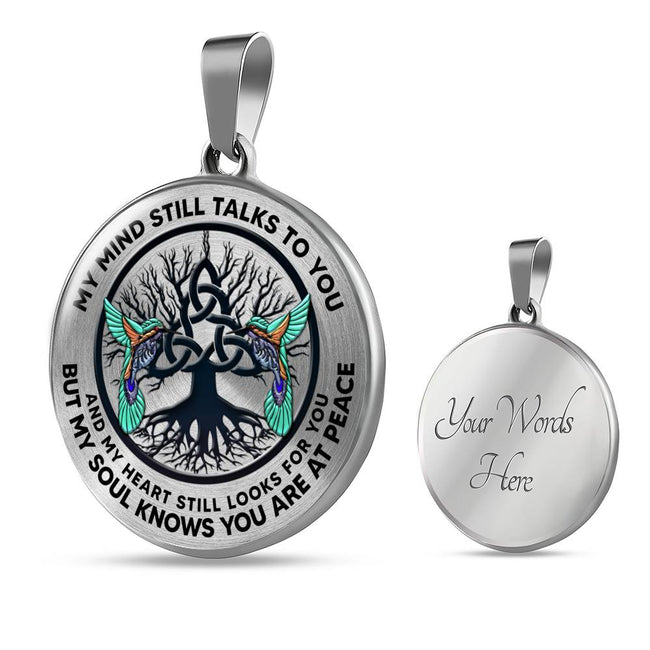 AG0608127 My Mind Still Talks To You Hummingbirds Black Celtic Knot Tree Of Life And Galaxy Luxury Necklace with Back Engraving