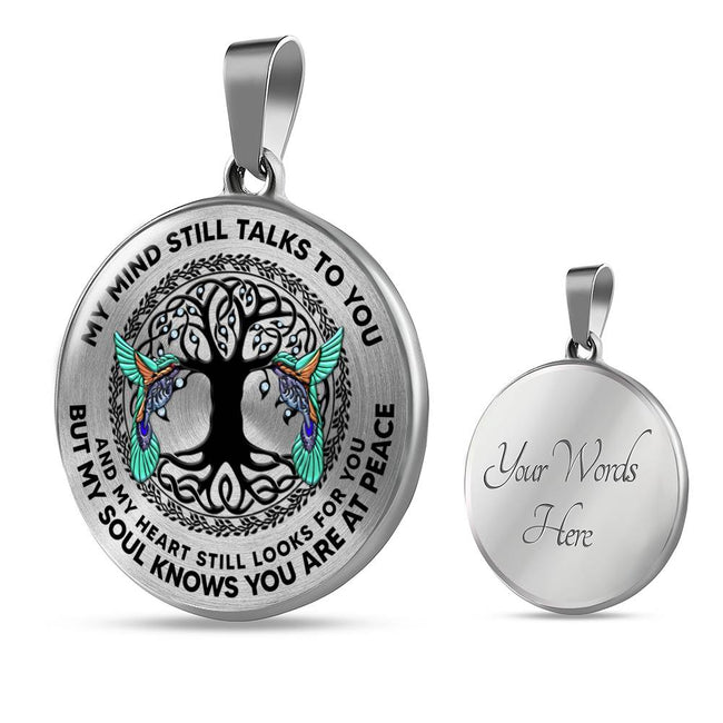 AG0608134 My Mind Still Talks To You Hummingbirds Black Celtic Knot Tree Of Life Luxury Necklace with Back Engraving