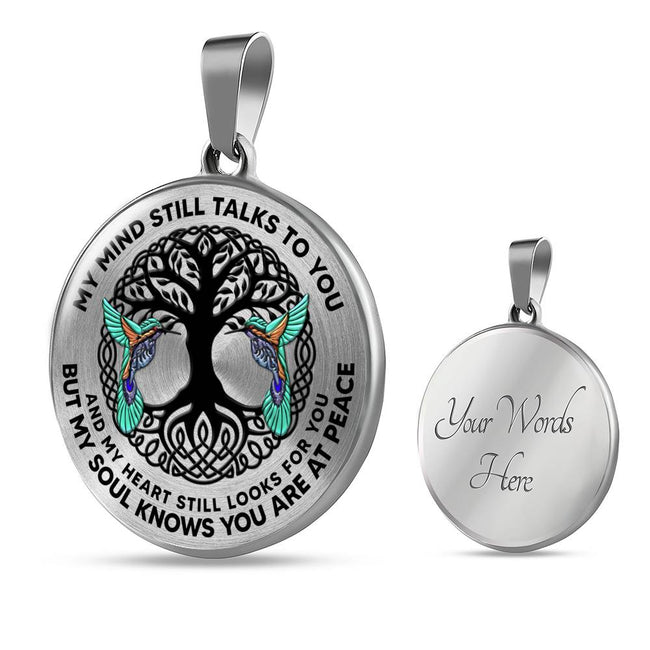 AG0608137 My Mind Still Talks To You Hummingbirds Black Celtic Knot Tree Of Life Luxury Necklace with Back Engraving