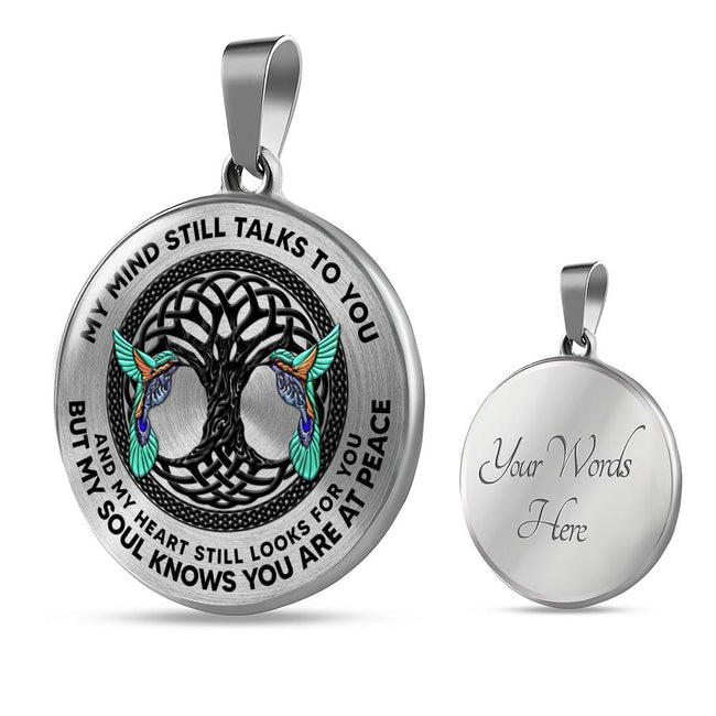 AG0608140 My Mind Still Talks To You Hummingbirds Black Celtic Knot Tree Of Life Luxury Necklace with Back Engraving