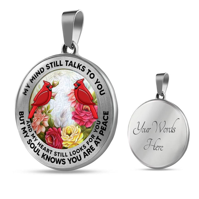 AG2208057 My Mind Still Talks To You Red Cardinals Flower Luxury Necklace with Back Engraving