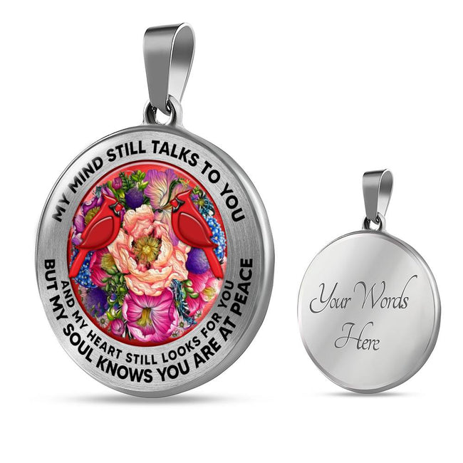 AG2408046 My Mind Still Talks To You Red Cardinals Flower Luxury Necklace with Back Engraving
