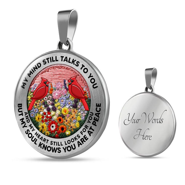 AG2508048 My Mind Still Talks To You Red Cardinals Flower Luxury Necklace with Back Engraving
