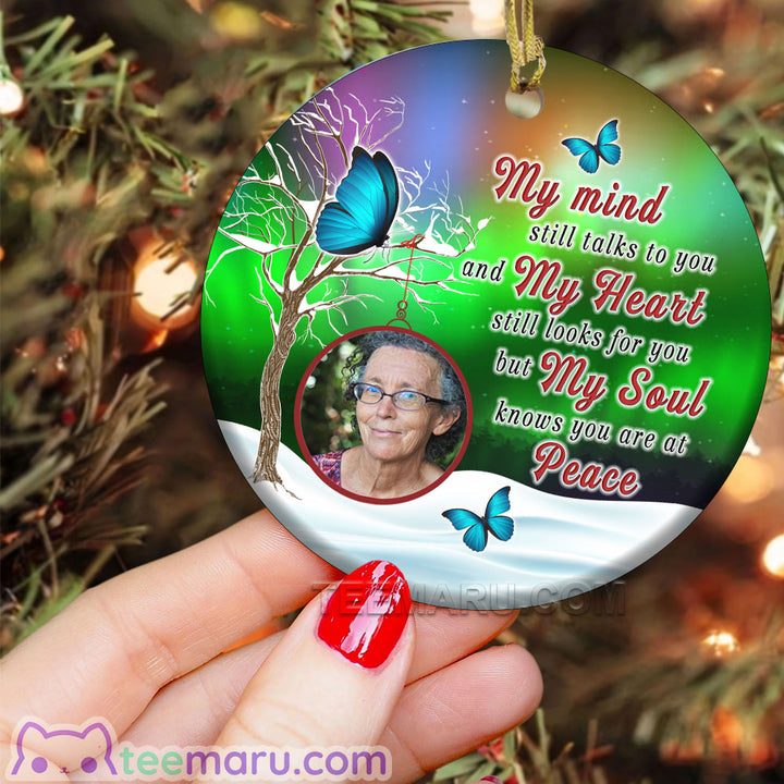 Blue Butterfly Cardinal My Mind Still Talks To You Personalized Memorial Ceramic Ornament COLVPT0010