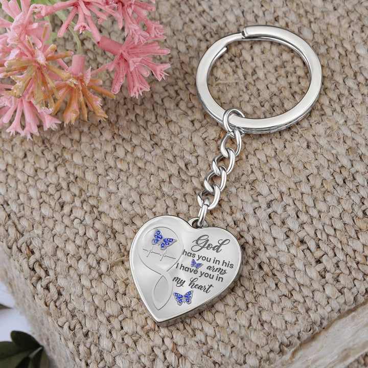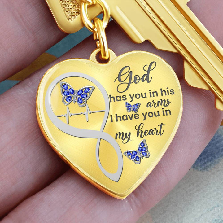 Blue Butterfly God Has You Memorial Heart Keychain HNLVBC0001