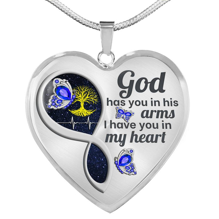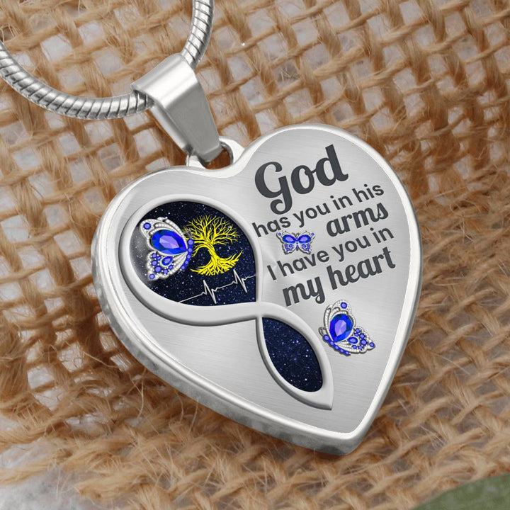 Blue Butterfly God Has You Memorial Heart Pendant Necklace HNLVBC0014