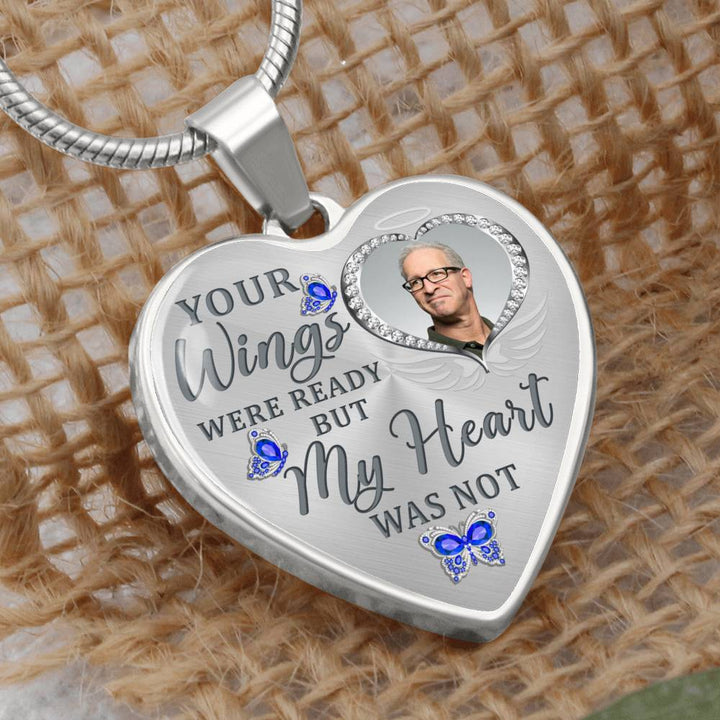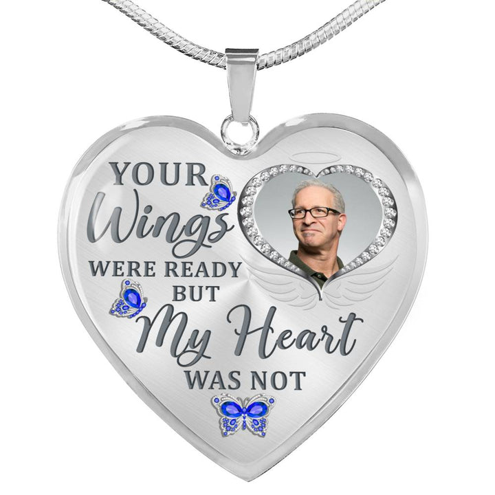 Blue Butterfly Your Wings Were Ready Memorial Heart Pendant Necklace HNLVBC0010
