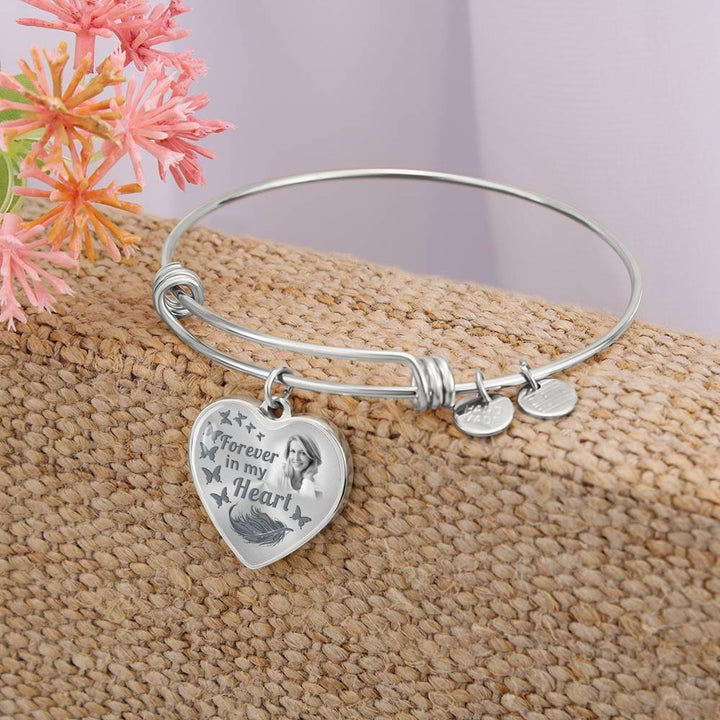 This Memorial Heart Pendant Bangle is a personalized gift you can give to someone who has lost a loved one. A way of showing them that they are not alone.