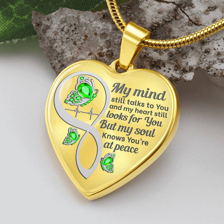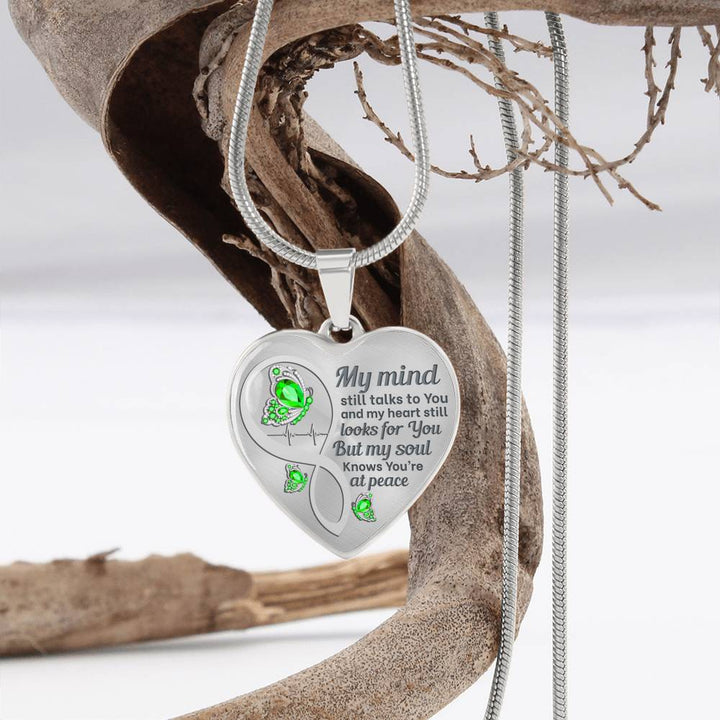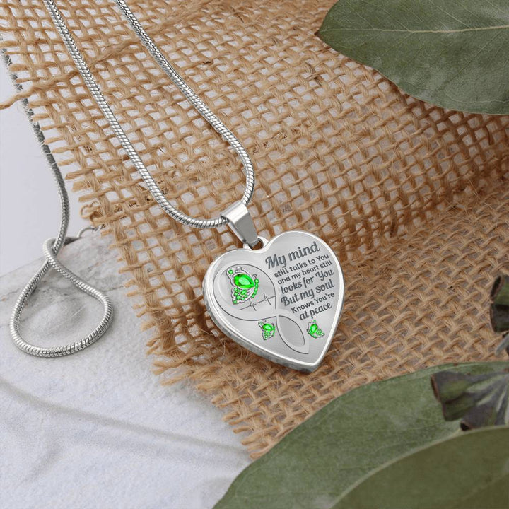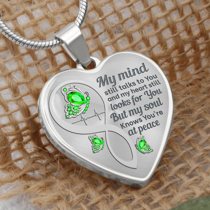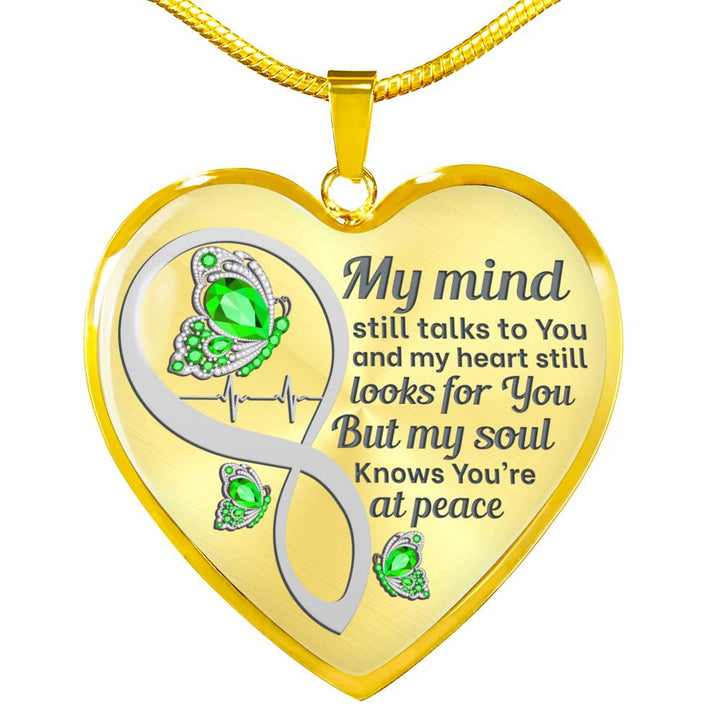 Green Butterfly My Mind Memorial Heart Pendant Necklace HNLVBC0002