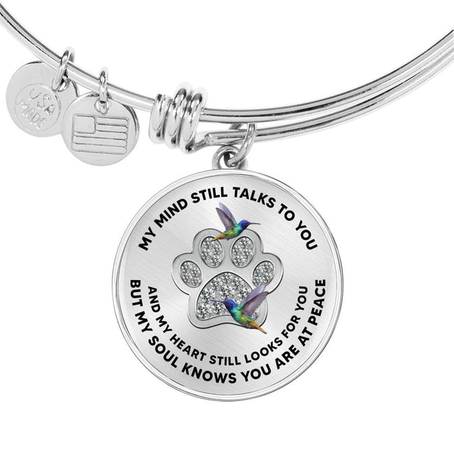 JL1507011 My Mind Still Talks To You Hummingbirds Silver One Paw Circle Adjustable Luxury Bangle with Back Engraving