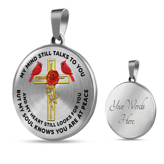 JL2107005 My Mind Still Talks To You Red Cardinals Rose Double Cross Luxury Necklace with Back Engraving