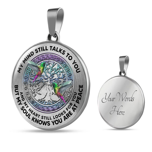 JL2407133 My Mind Still Talks To You Green Hummingbirds And Metal Tree Of Life Luxury Necklace with Back Engraving
