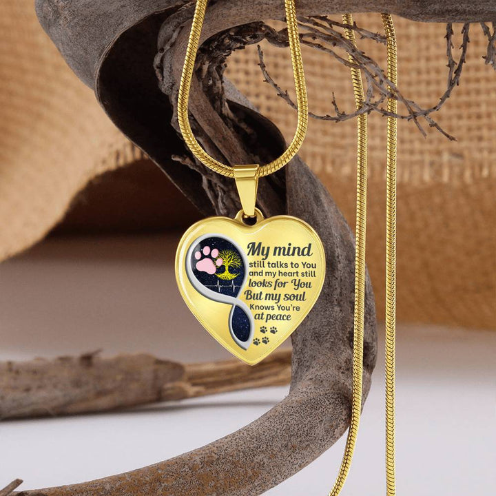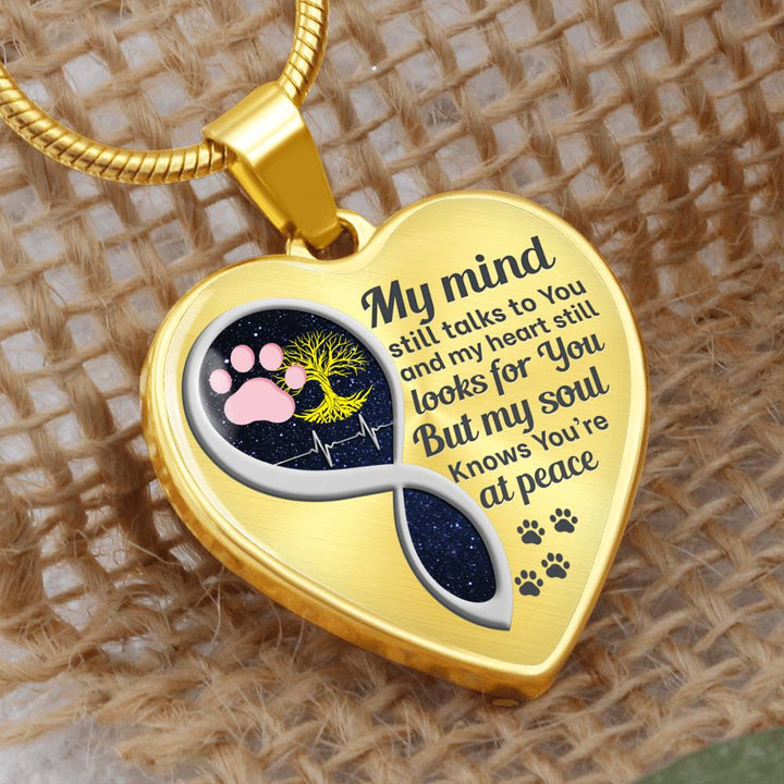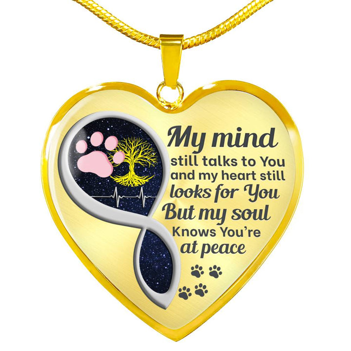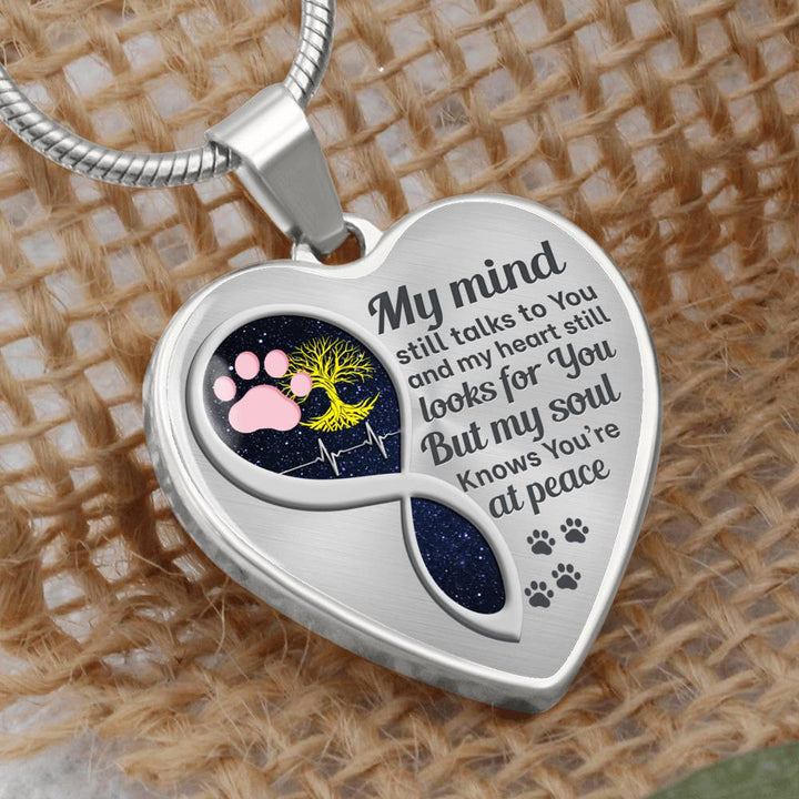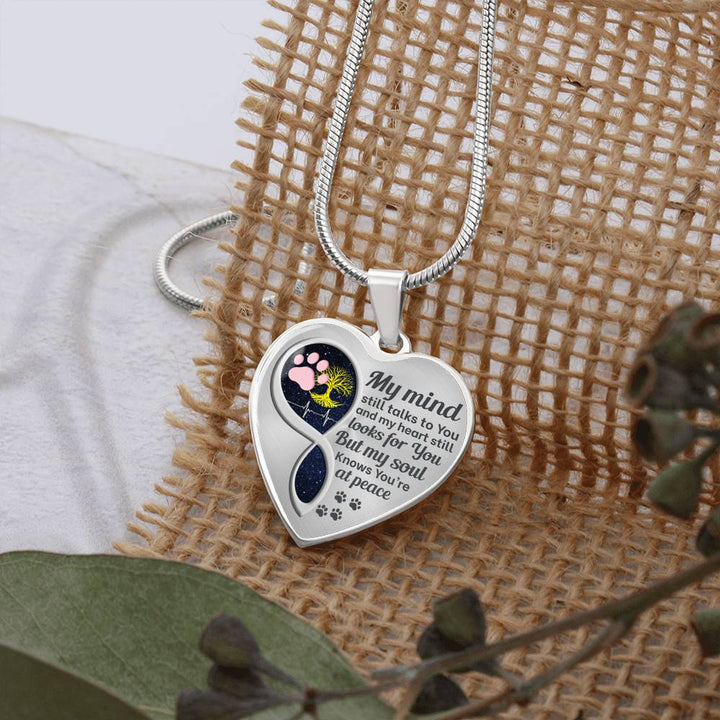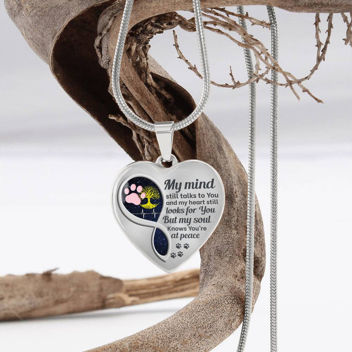 Light Pink Pet Paw Print My Mind Memorial Heart Pendant Necklace HNLVBC0012