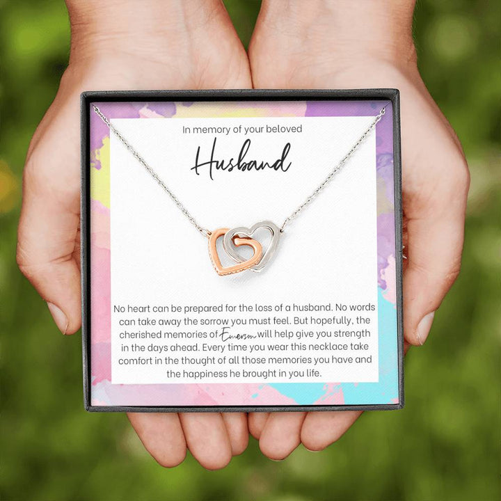 Loss of Husband Interlocking Hearts Memorial Necklace from Teemaru. A personalized gift you can give to someone who has lost a loved one. A way of showing them that they are not alone.