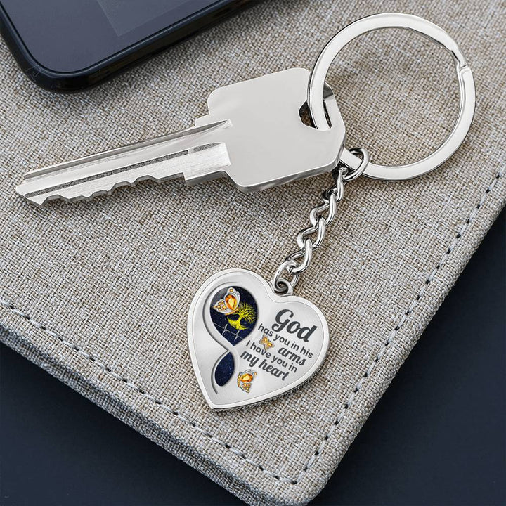 Orange Butterfly God Has You Memorial Heart Keychain HNLVBC0014