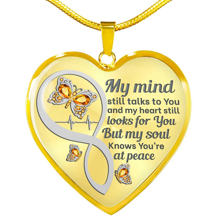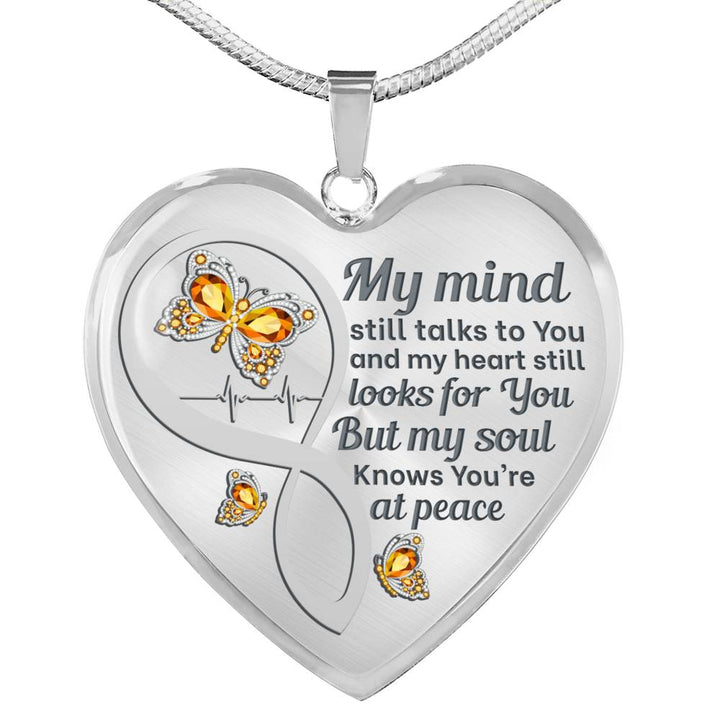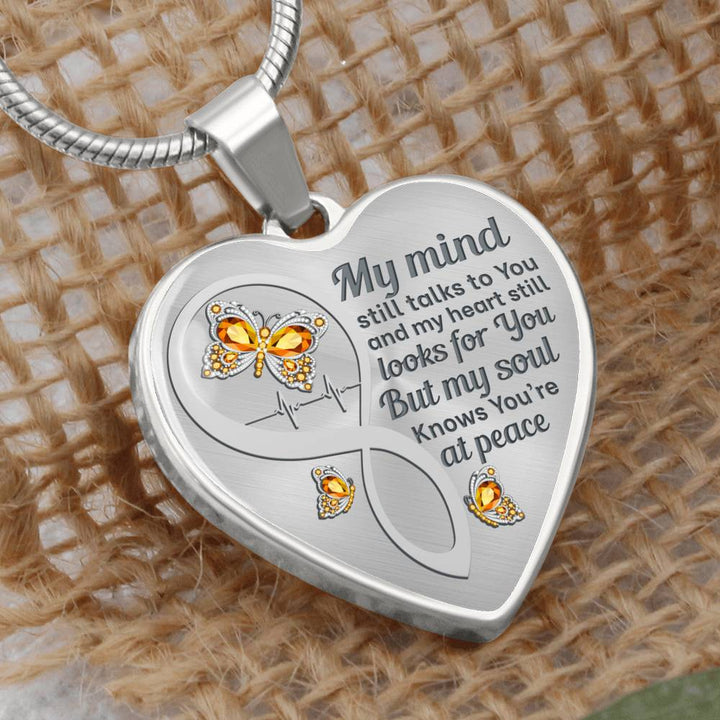 Orange Butterfly My Mind Memorial Heart Pendant Necklace HNLVBC0005