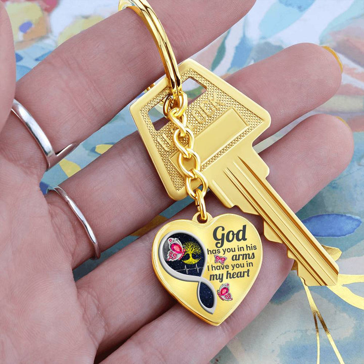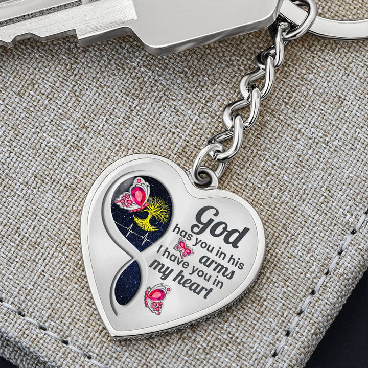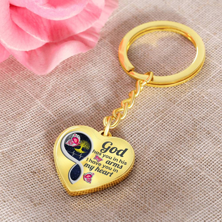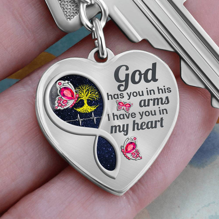 Pink Butterfly God Has You Memorial Heart Keychain HNLVBC0014