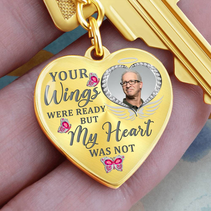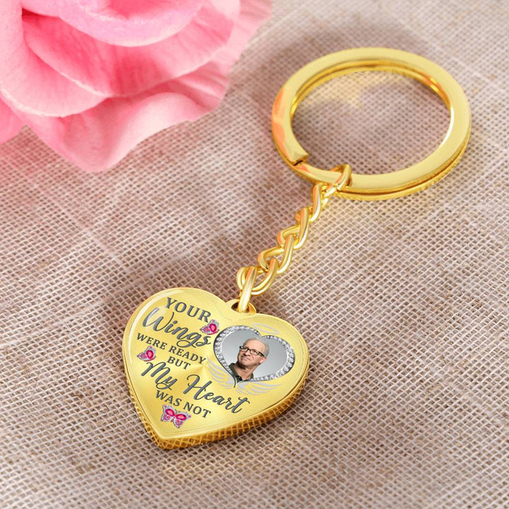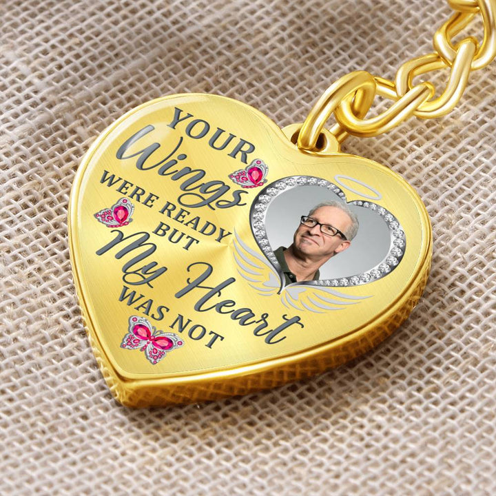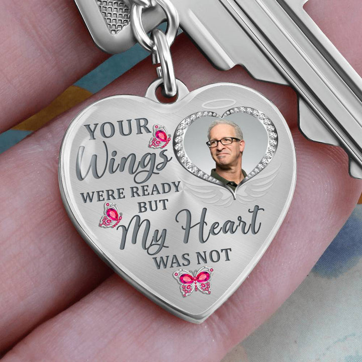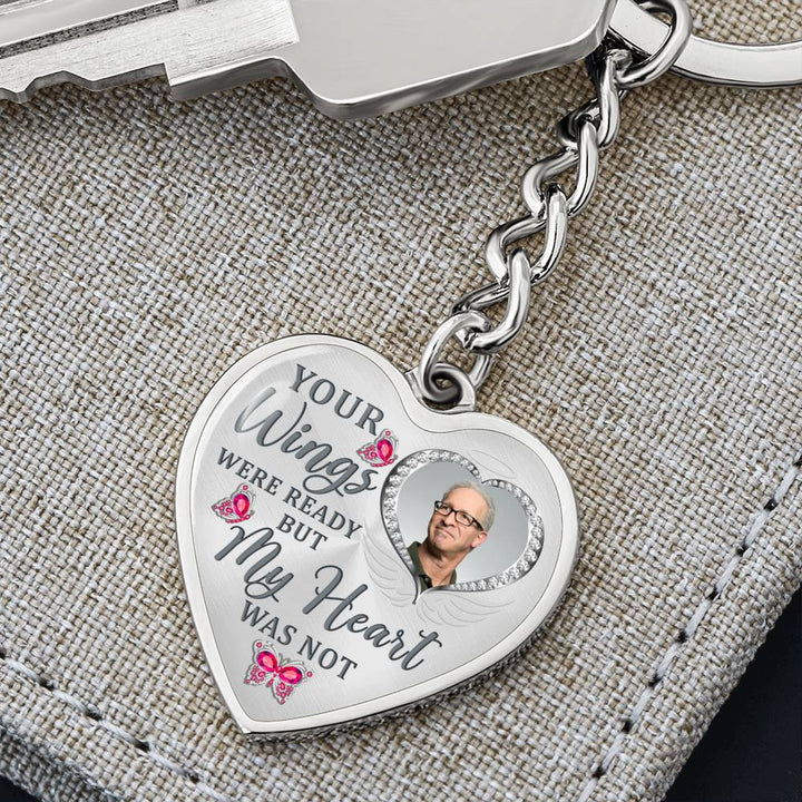 Pink Butterfly Your Wings Were Ready Memorial Heart Keychain HNLVBC0010