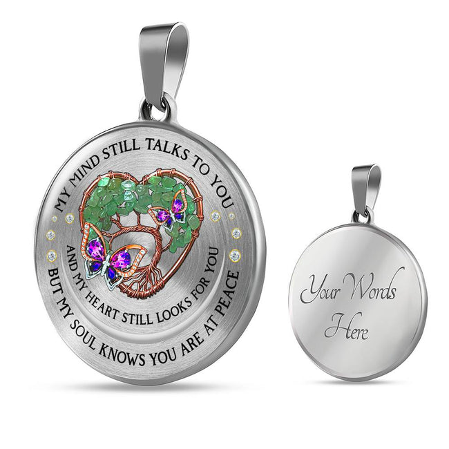 POLVSH0055 Purple Butterfly Green Heart Tree Of Life My Mind Still Talks To U Luxury Necklace with Back Engraving