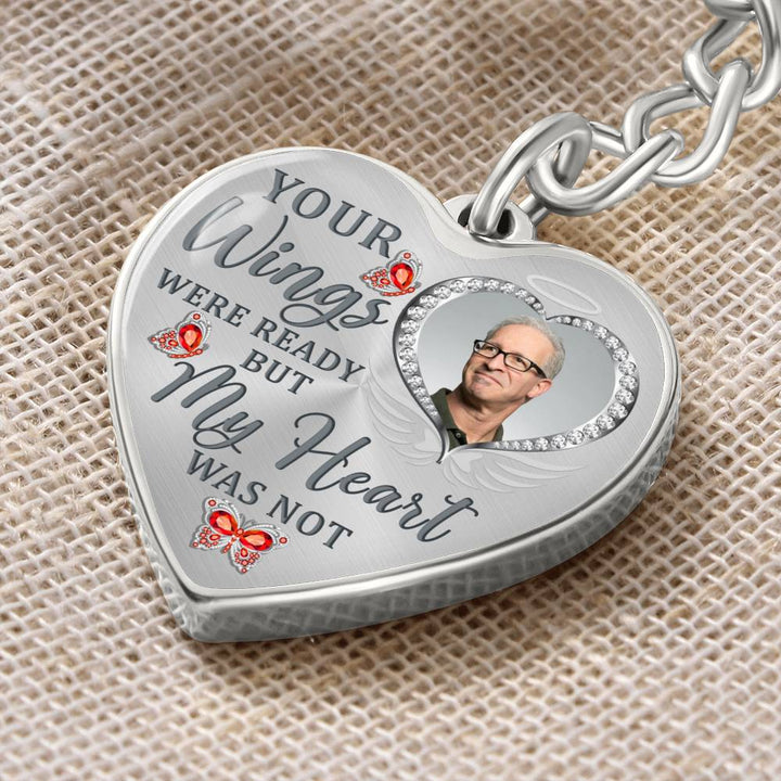 Red Butterfly Your Wings Were Ready Memorial Heart Keychain HNLVBC0010