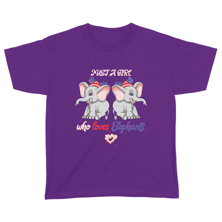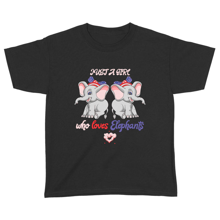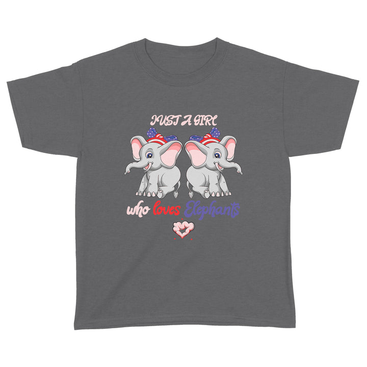 TeeMaru Elephant Youth T-Shirt ELTS030 - Just A Girl Who Loves Elephant Us Flag