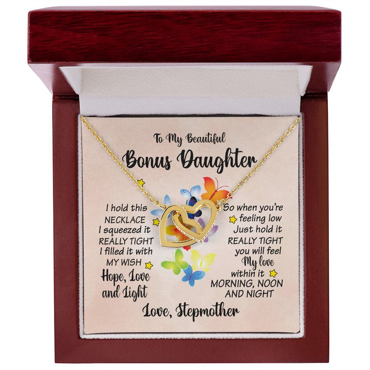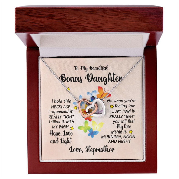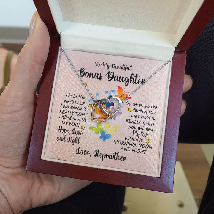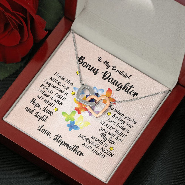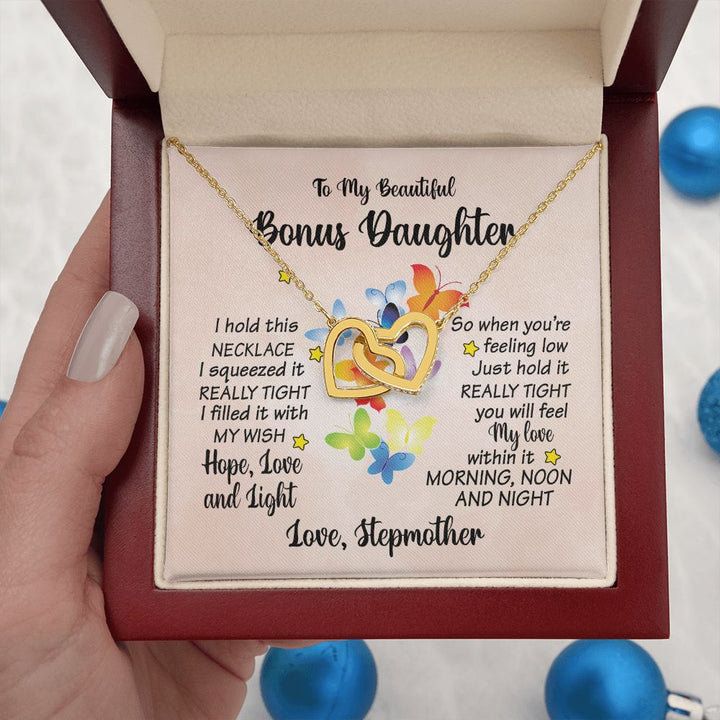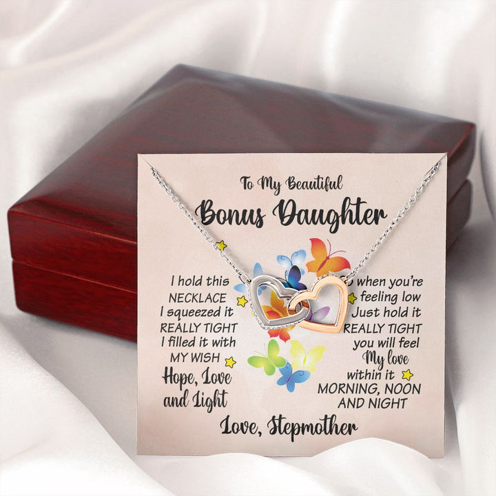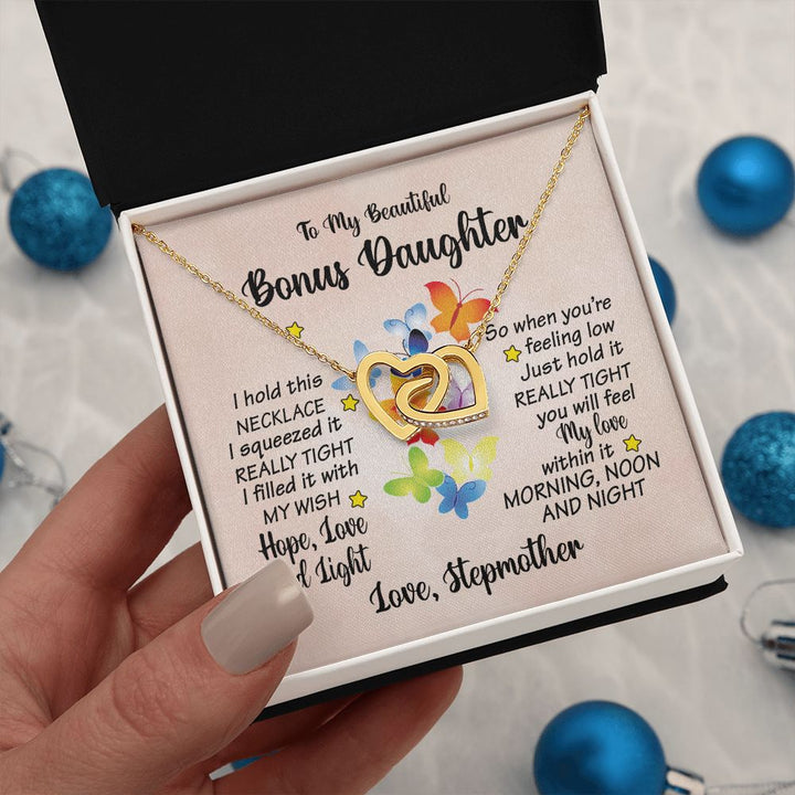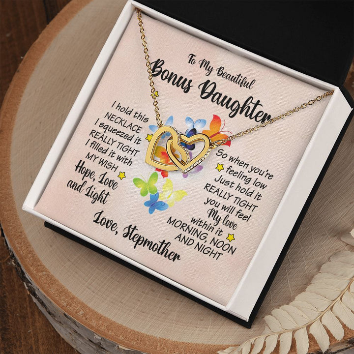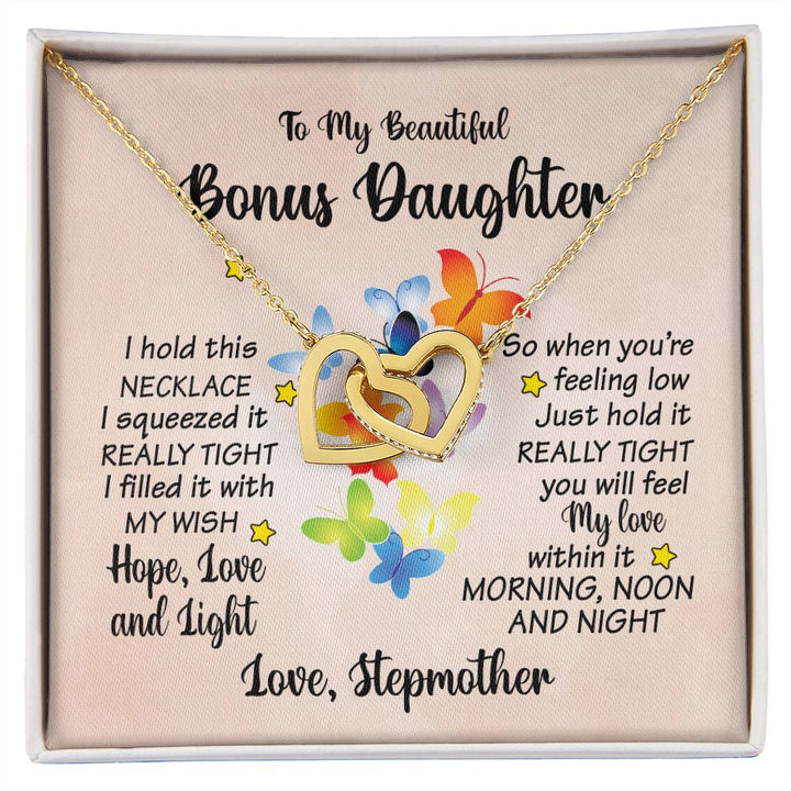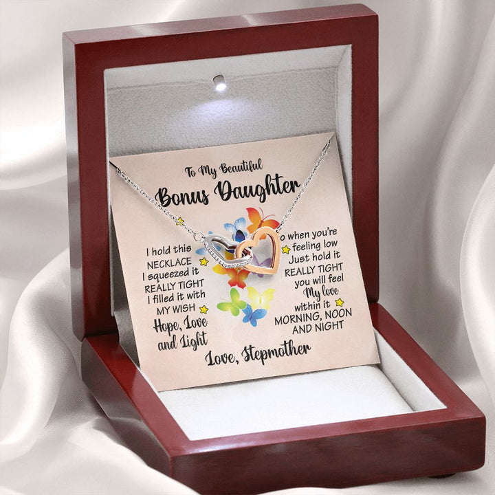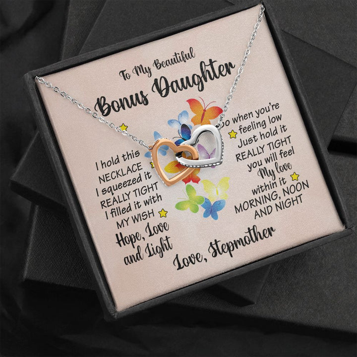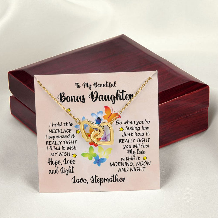 To My Beautiful Bonus Daughter Butterfly Interlocking Hearts Necklace Gift From Stepmother