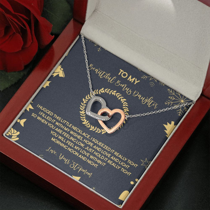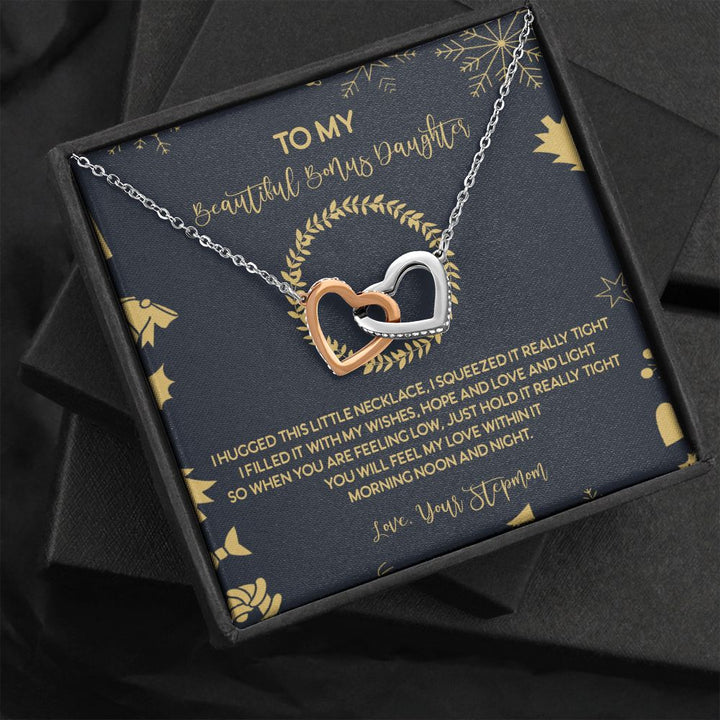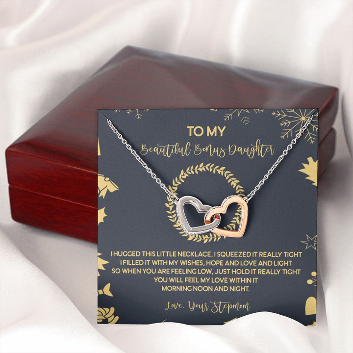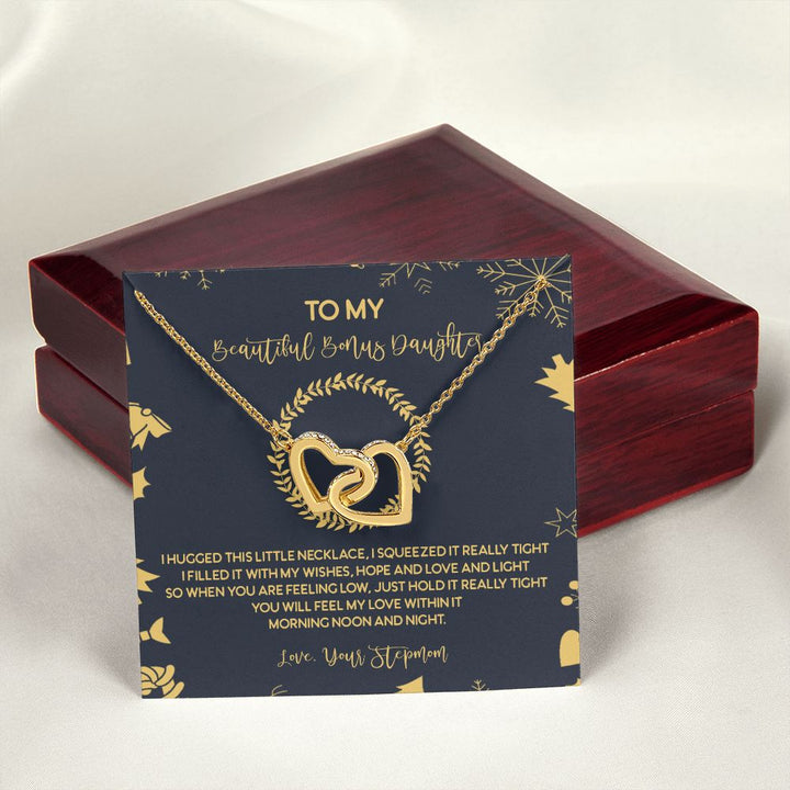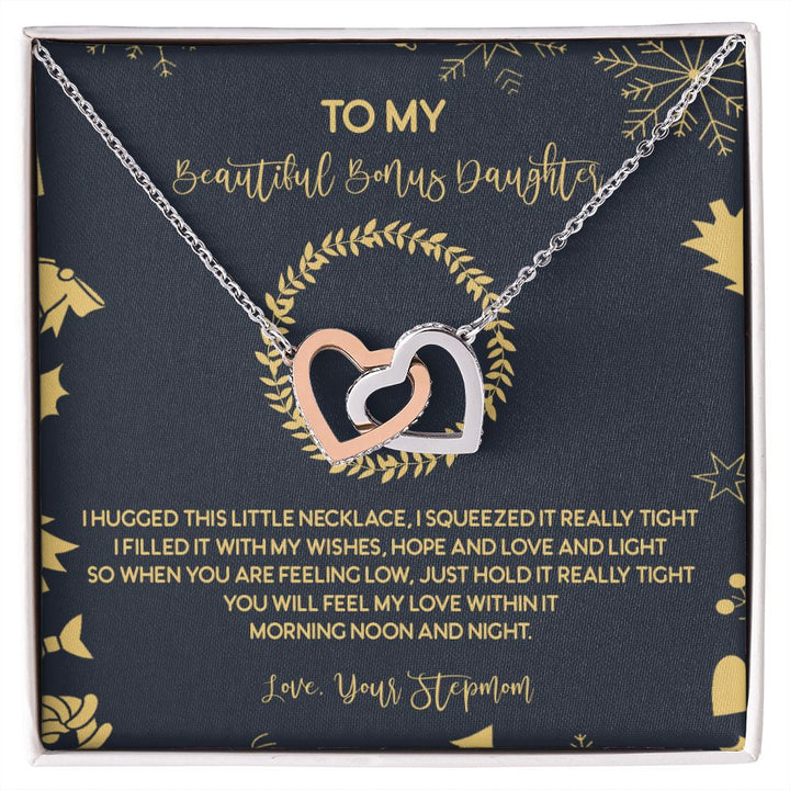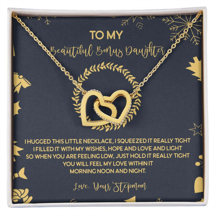 To My Beautiful Bonus Daughter Christmas Interlocking Hearts Necklace Gift From Stepmom
