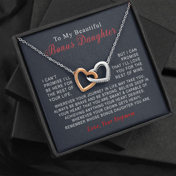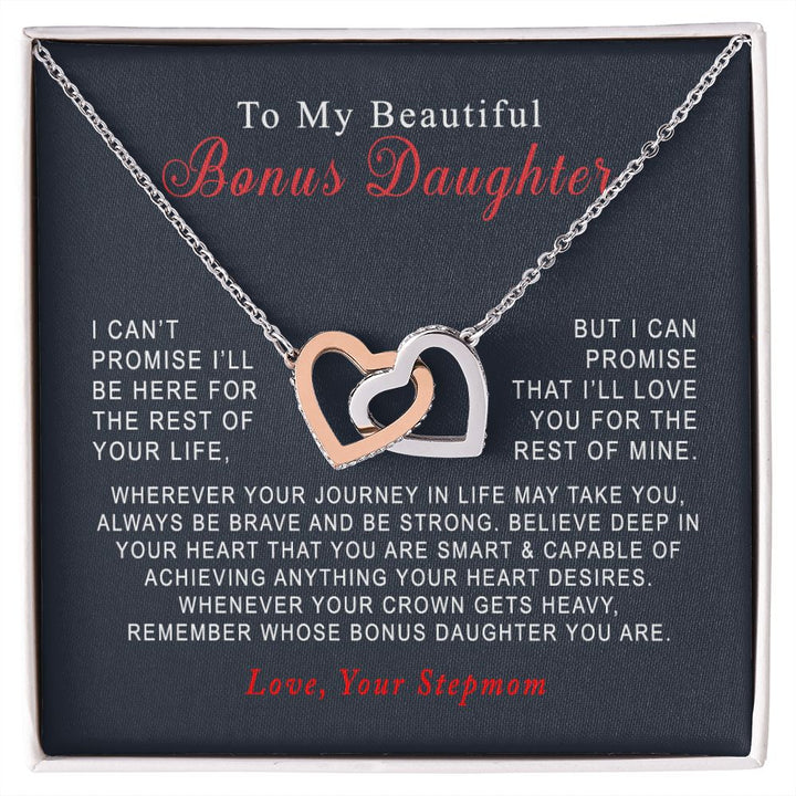 To My Beautiful Bonus Daughter Christmas Interlocking Hearts Necklace Gift From Stepmother