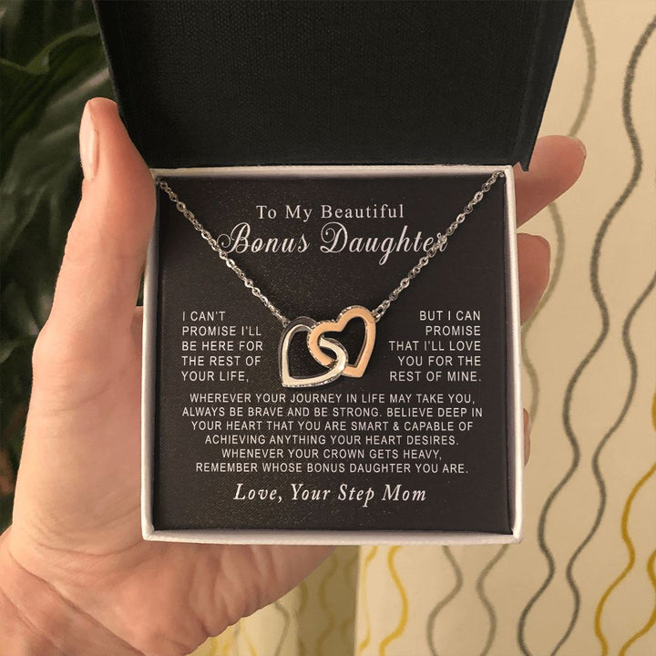 To My Beautiful Bonus Daughter Interlocking Hearts Necklace Gift From Stepmom