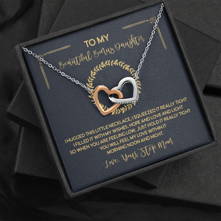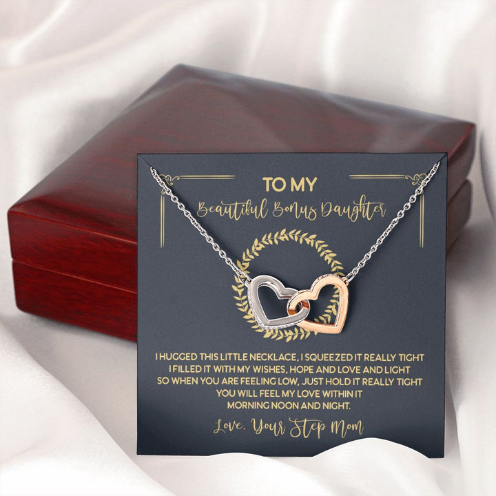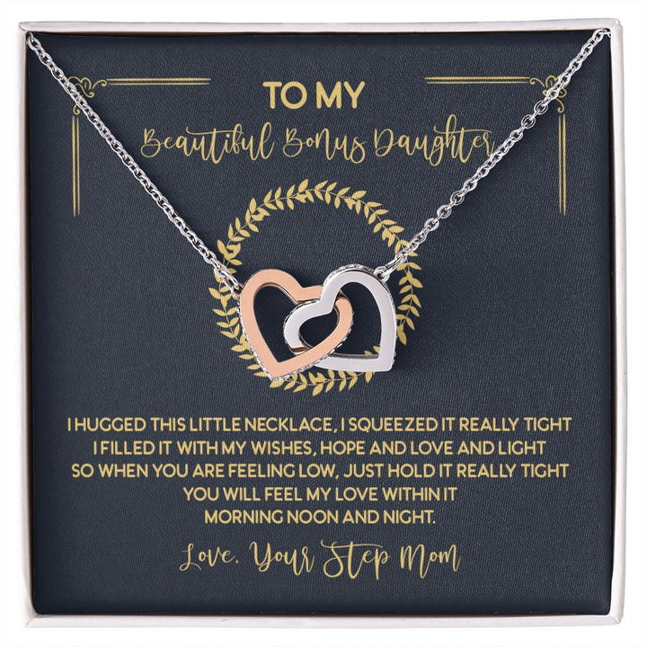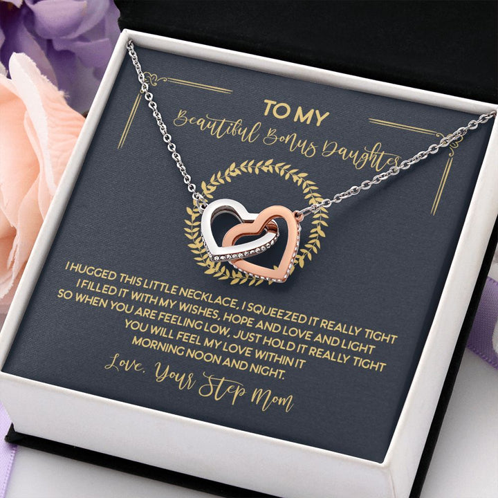 To My Beautiful Bonus Daughter Interlocking Hearts Necklace Gift From Stepmom