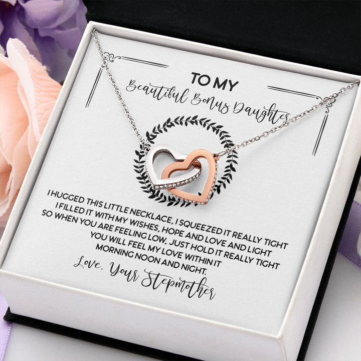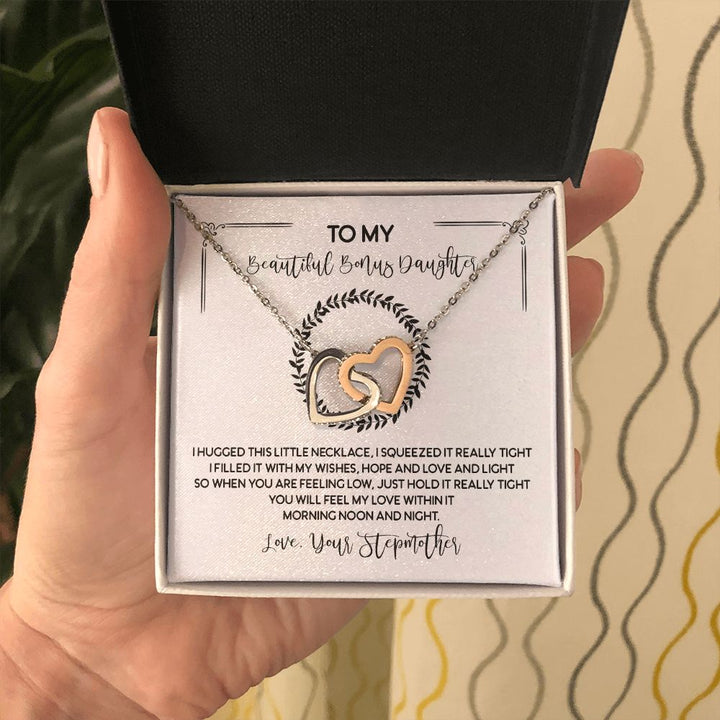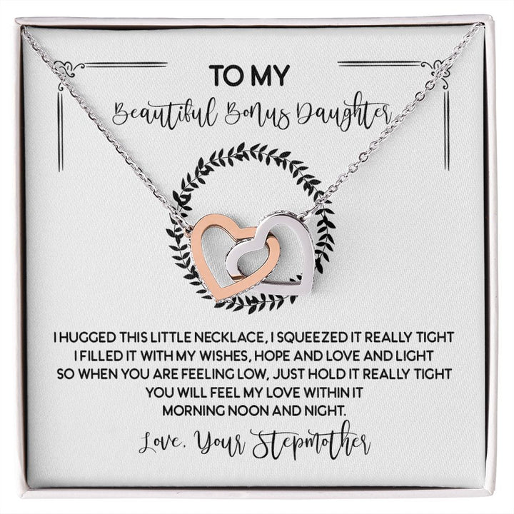 To My Beautiful Bonus Daughter Interlocking Hearts Necklace Gift From Stepmother