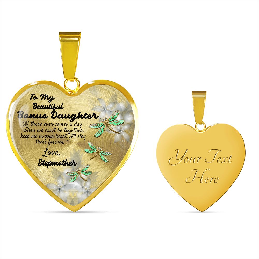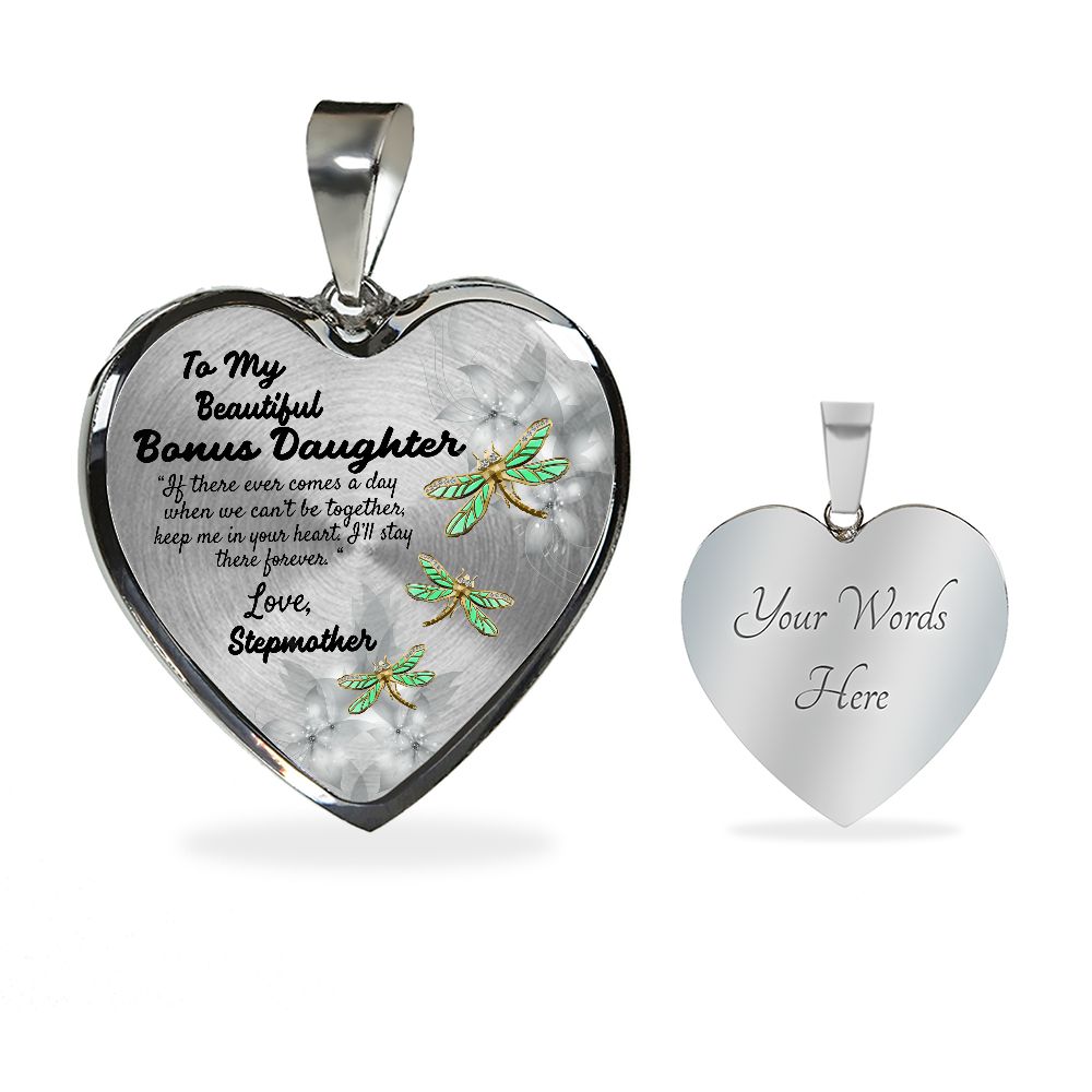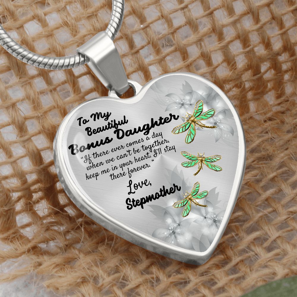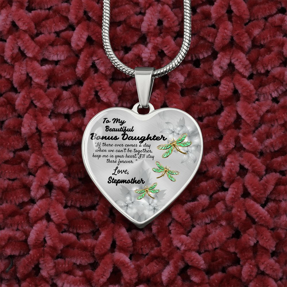 To My Beautiful Bonus Daughter Heart Necklace Birthday Gift, Christmas Gift From Stepmother