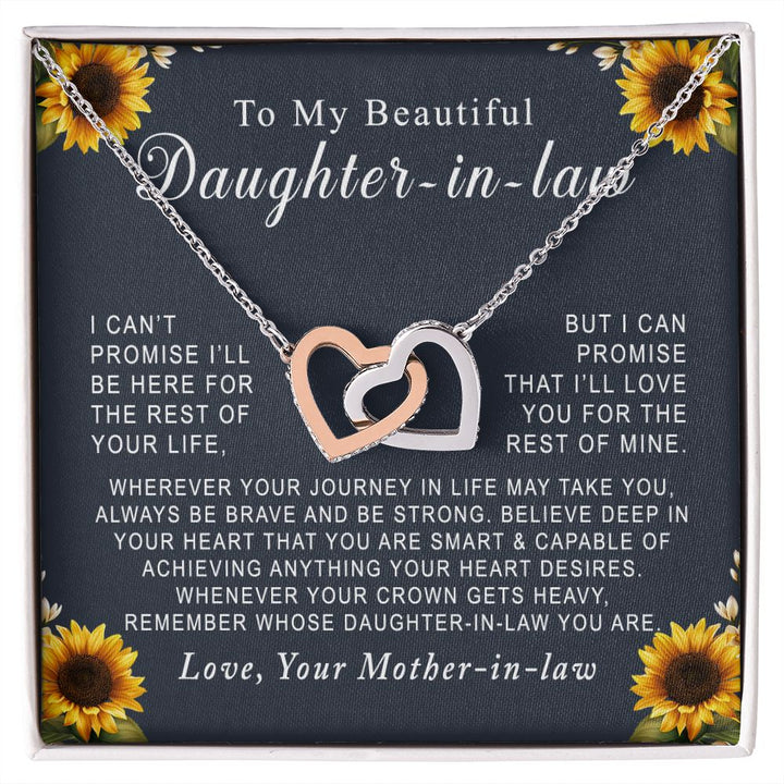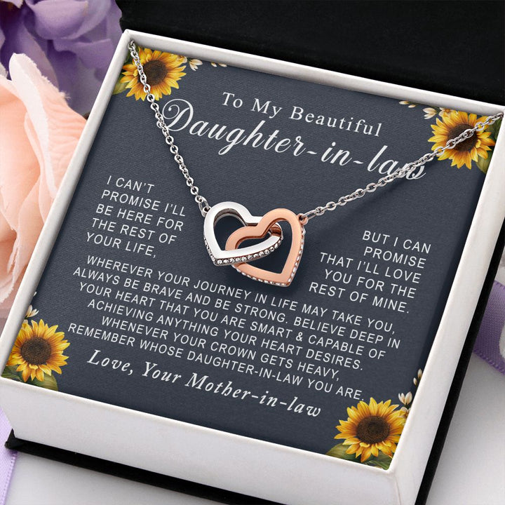 To My Beautiful Daughter-in-law Sunflowers Interlocking Hearts Necklace Gift From Mother-in-law