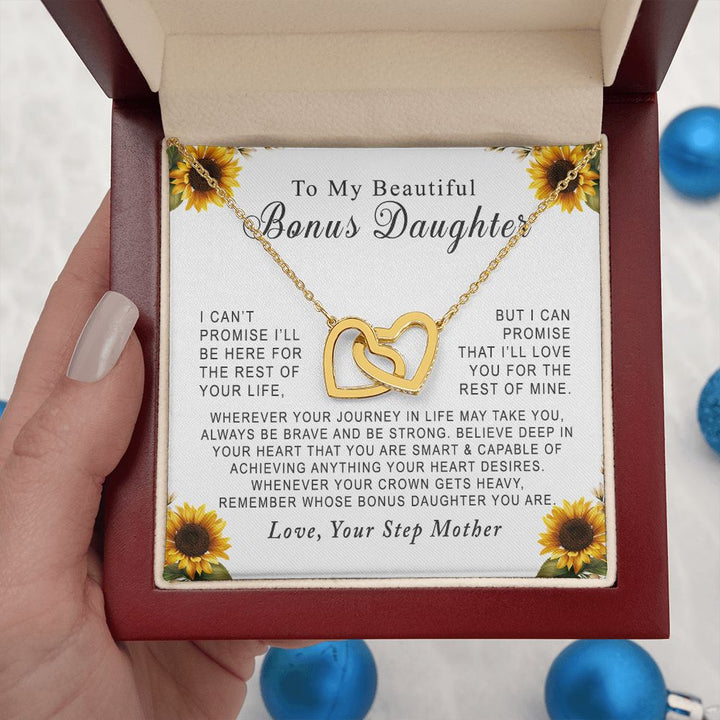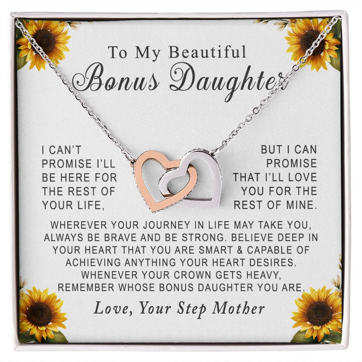 To My Beautiful Bonus Daughter Interlocking Hearts Necklace Gift From Stepmother