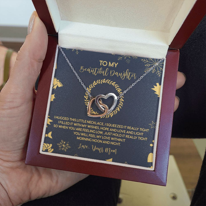 To My Beautiful Daughter Christmas Interlocking Hearts Necklace Gift From Mom
