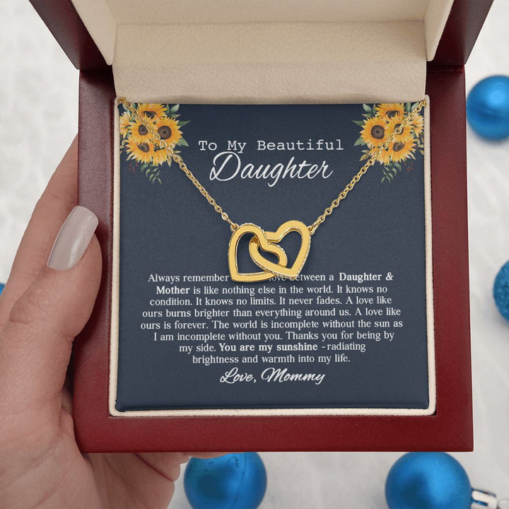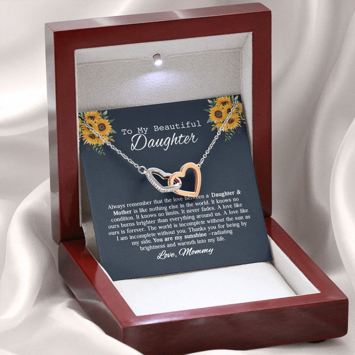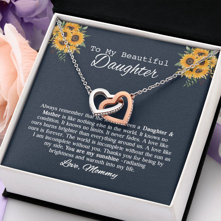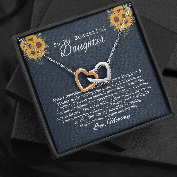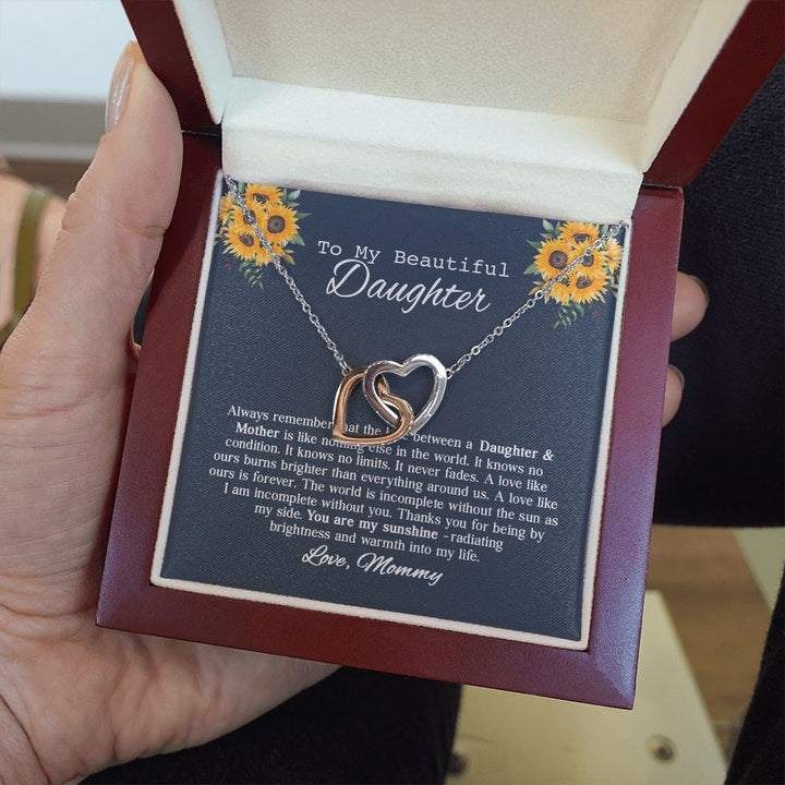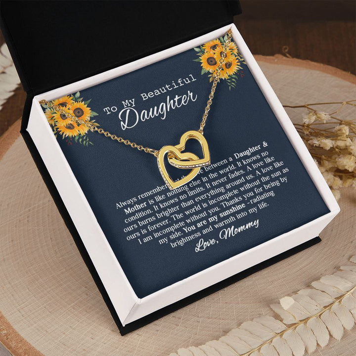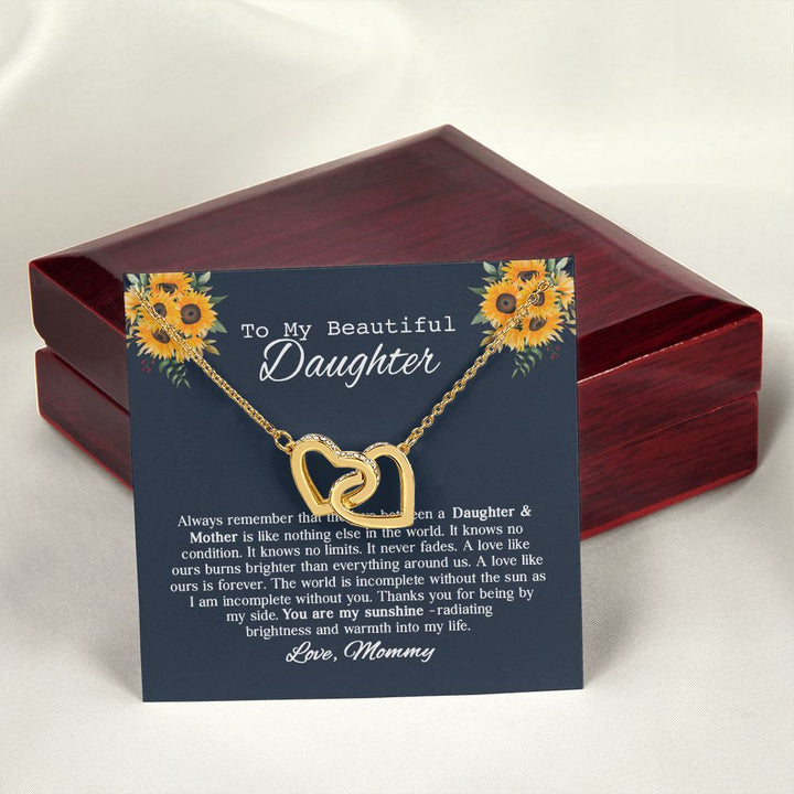 To My Beautiful Daughter Sunflower Interlocking Hearts Necklace Gift From Mommy