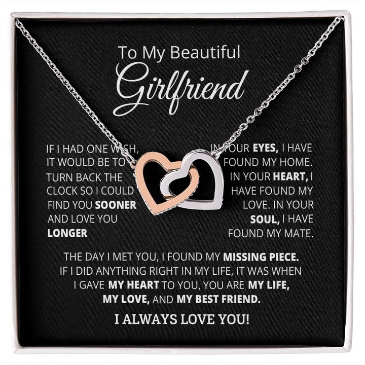 To My Beautiful Girlfriend Interlocking Hearts Necklace Gift From Boyfriend