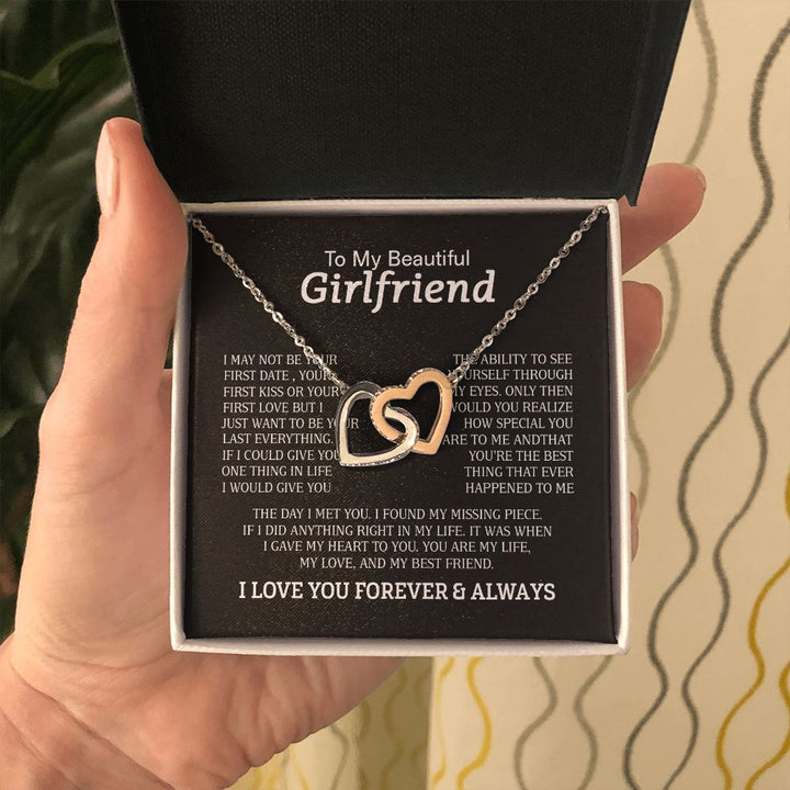 To My Beautiful Girlfriend Interlocking Hearts Necklace Gift From Boyfriend