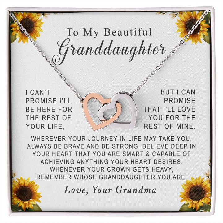 To My Beautiful Granddaughter Sunflower Interlocking Hearts Necklace Gift From Grandma