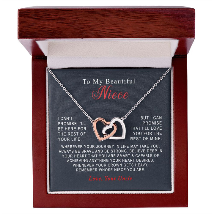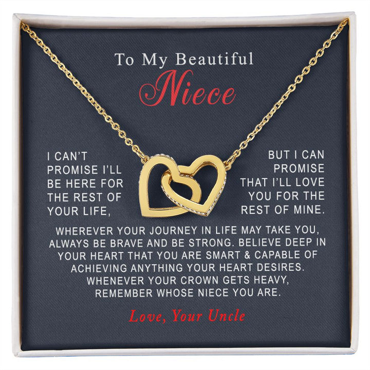 To My Beautiful Niece Christmas Interlocking Hearts Necklace Gift From Uncle