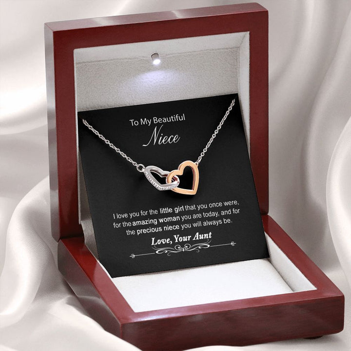 To My Beautiful Niece Interlocking Hearts Necklace Gift From Aunt