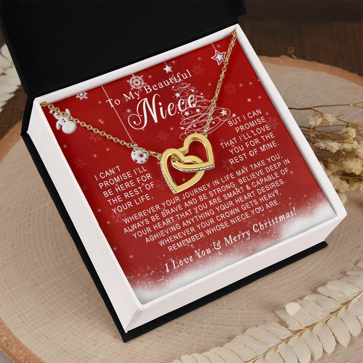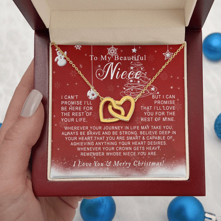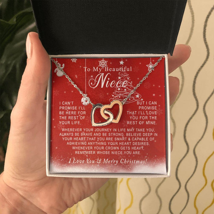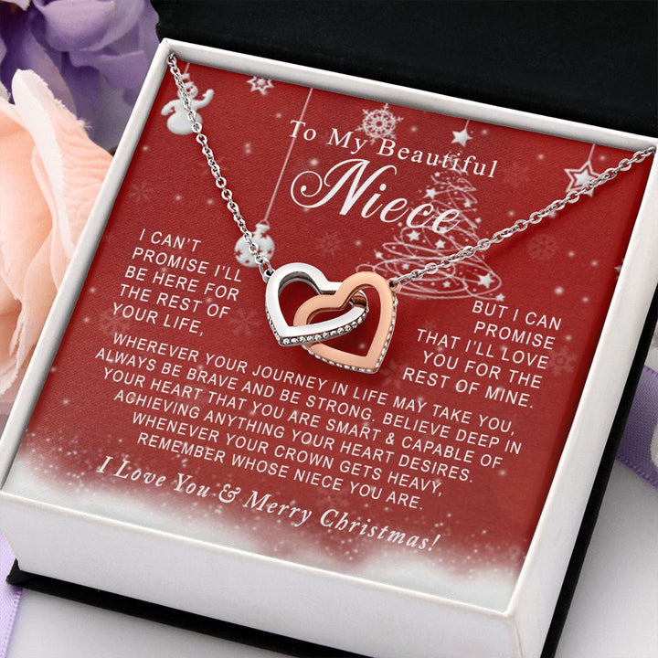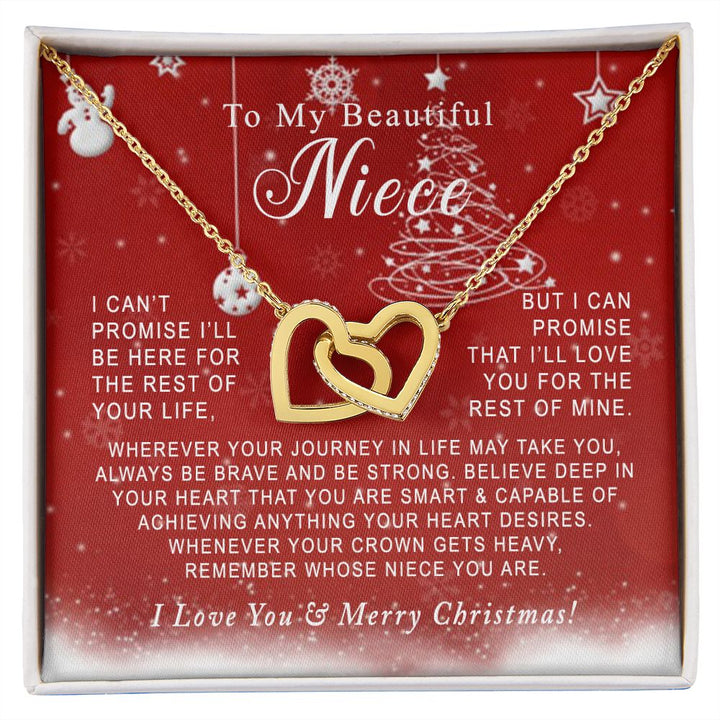 To My Beautiful Niece Merry Christmas Interlocking Hearts Necklace Gift From Aunt or Uncle