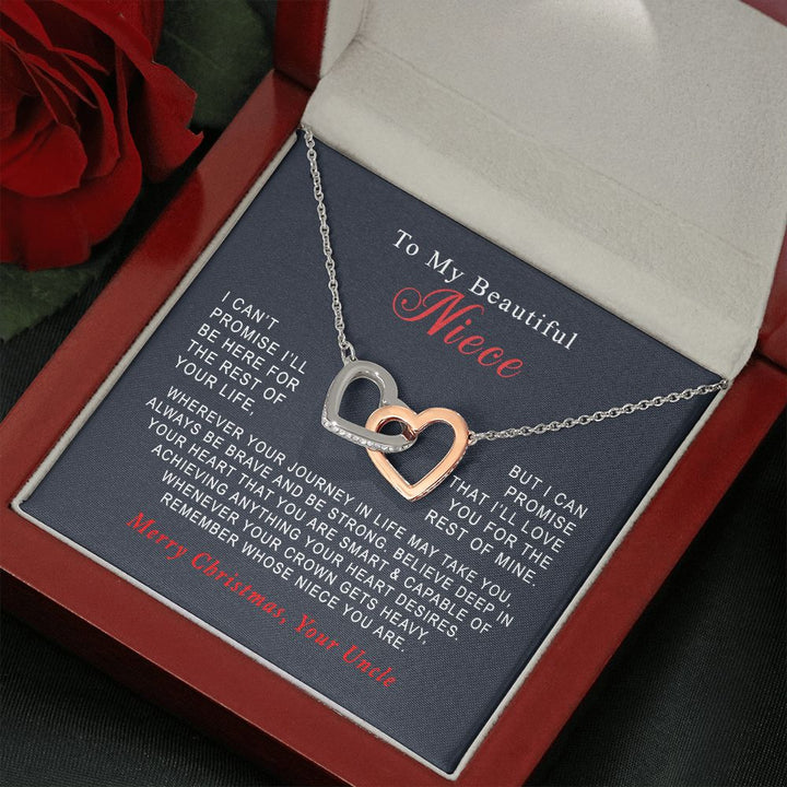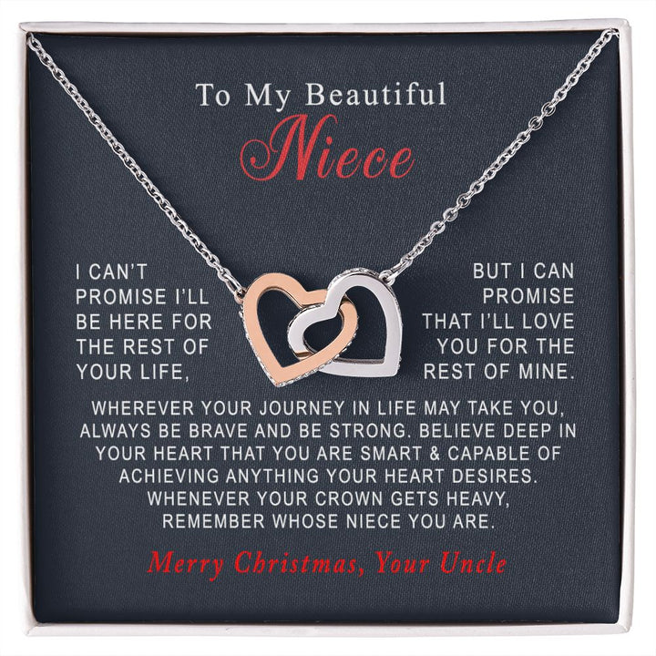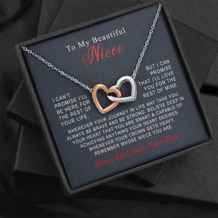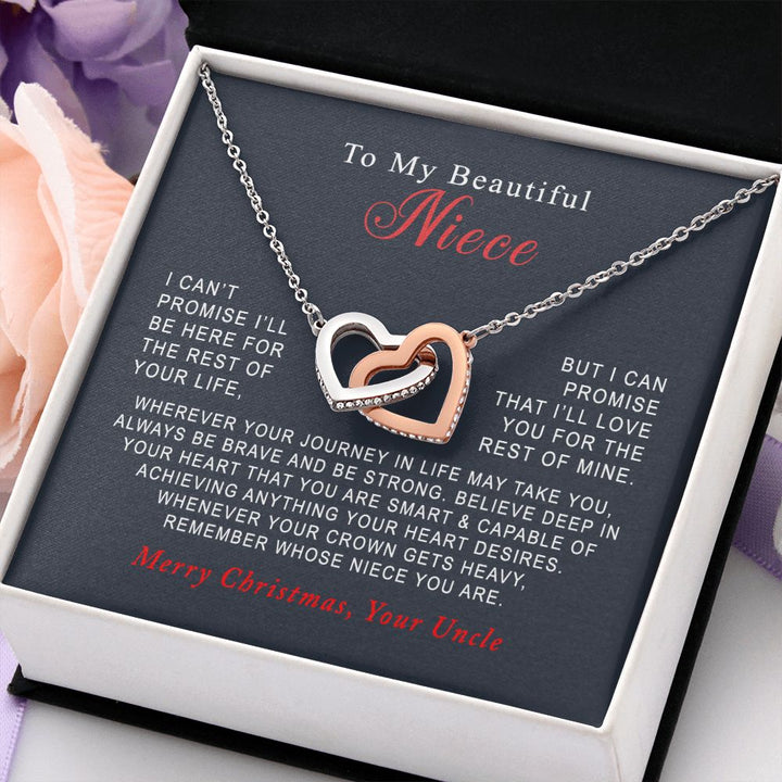 To My Beautiful Niece Merry Christmas Interlocking Hearts Necklace Gift From Uncle