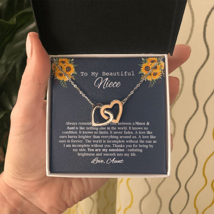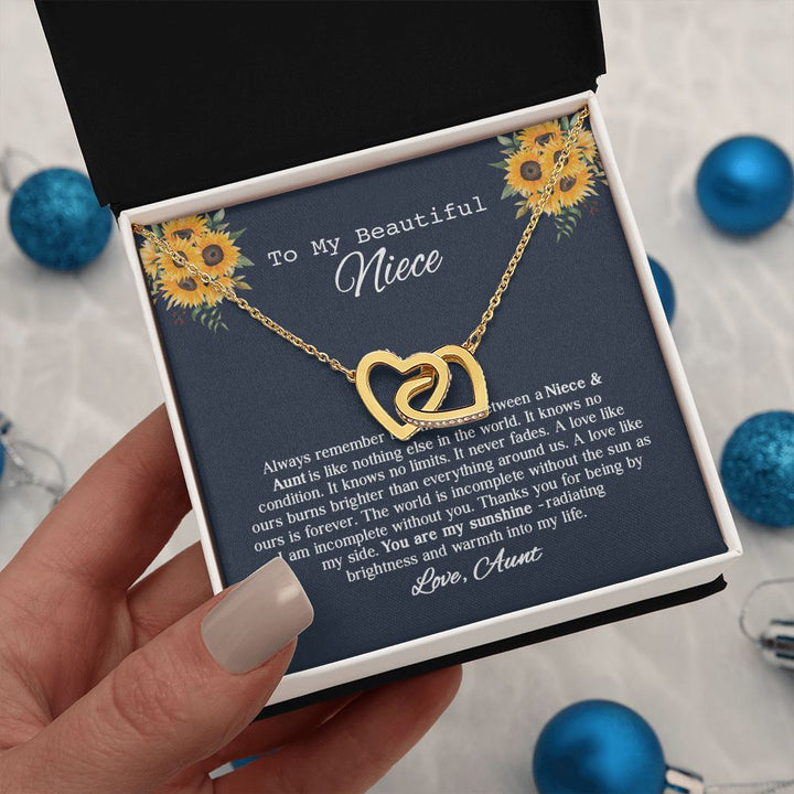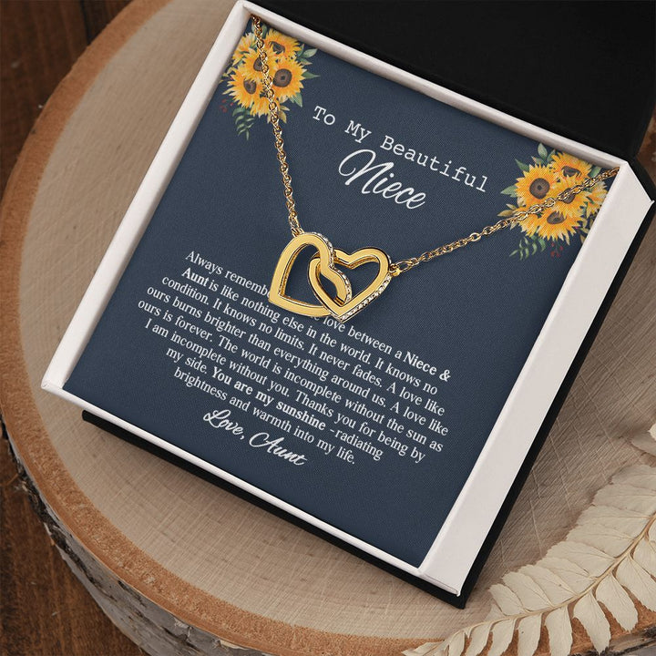 To My Beautiful Niece Sunflower Interlocking Hearts Necklace Gift From Aunt